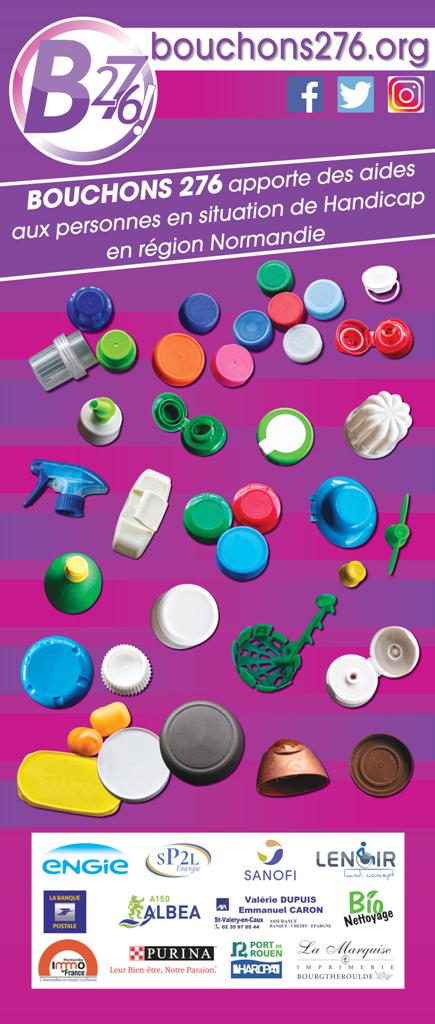 BOUCHONS 276 est une association Normande qui existe depuis avril 2003, Nous venons en aide aux personnes en situation de Handicap par la collecte des bouchons et couvercles en plastique.