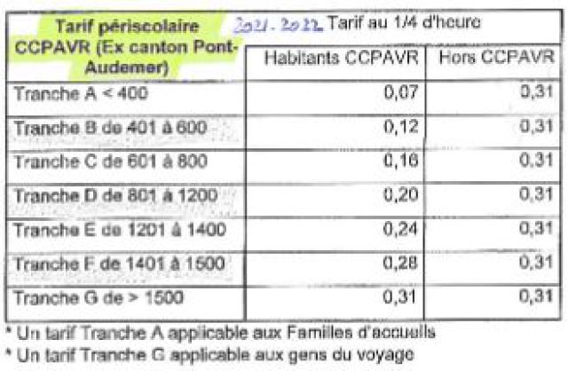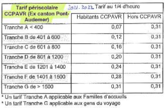Tarif Accueil Périscolaire à partir de 2021/2022 :